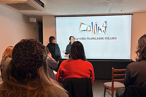 Shortly before our excursion, Calling Filmmaker Coop was a guest at the HBK Film Forum with several short films; as part of our excursion, we now made a return visit with mutual film screenings. The event at the Mediaspace “FRAME in VOX” was opened by experimental filmmakers Yüiho Umeoka and Yu-Jin Kim; after the three short film programmes, there was a reception with an opportunity for exchange and discussion.
