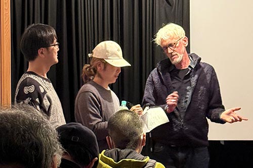 Ein Höhepunkt der Exkursion war die Präsentation aktueller Arbeiten der Filmklasse im renommierten Image Forum Tokyo. Wir sind vor allem Kenji Kadowaki, dem Leiter des Forums, dankbar, dass wir die Gelegenheit erhielten, vor dem dortigen 'Hochleistungspublikum' zwei Filmprogramme zeigen zu können: Ein Programm mit Filmen der Exkursionsteilnehmer*innen, und ein Programm u.a. mit den aktuell restaurierten Super8-Filmen von Michael Brynntrup. Das anschließende, ausführliche Q&A belegt die Existenz einer international-verbindenden Experimentalfilm-Filmsprache.